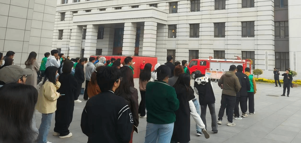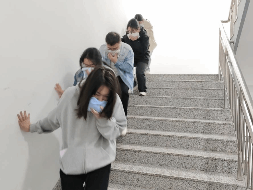 上午9时,演练正式开始,所有研究生按照预定方案中的安全撤离路线抵达疏散安全区域。