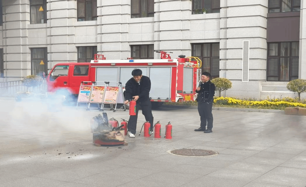 随后,讲解员在研究生公寓广场前为师生详细介绍了日常火灾隐患与火灾预防、灭火器等灭火器材的操作与使用方法,以及如何在火场逃生等消防安全知识,带领研究生代表进行灭火器材操作演练,并组织全体研究生体验消防疏散逃生体验屋。